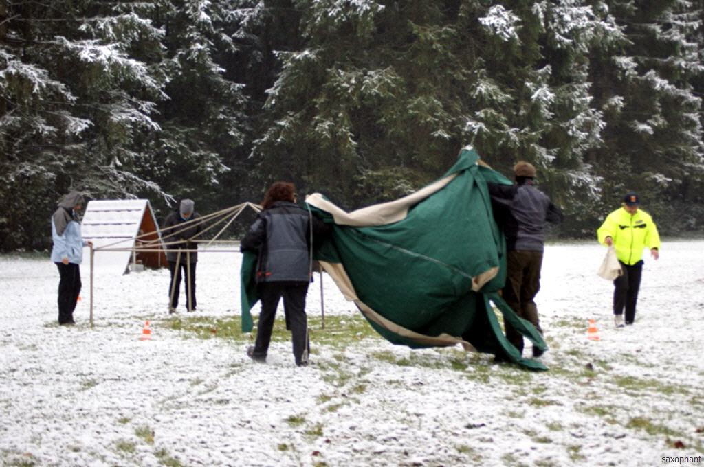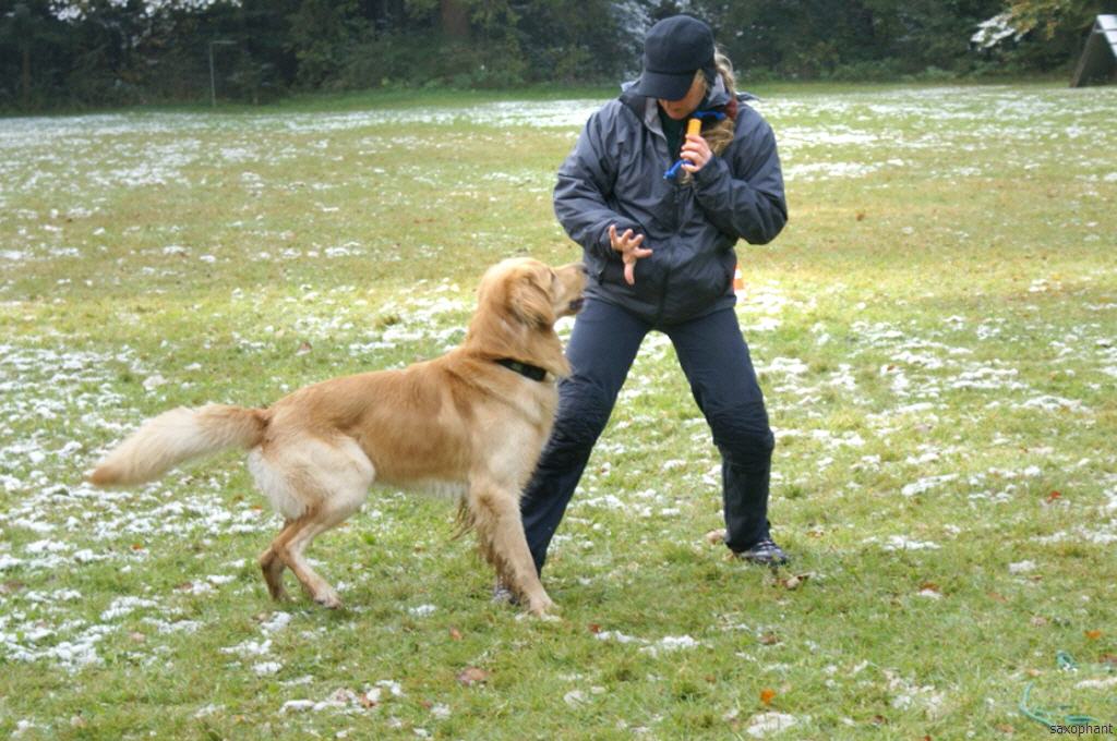 Der Start des ersten Seminartages „Richtig spielen mit dem Hund“ findet unter winterlichen Bedingungen statt. Um die Frischluft-Veranstaltung etwas gemütlicher zu gestalten, stellen die Malteser und der HSF Zelte als Unterstellmöglichkeit zur Verfügung. – Zudem werden wir mit heißem Kaffee und Häppchen im Vereinsheim empfangen.